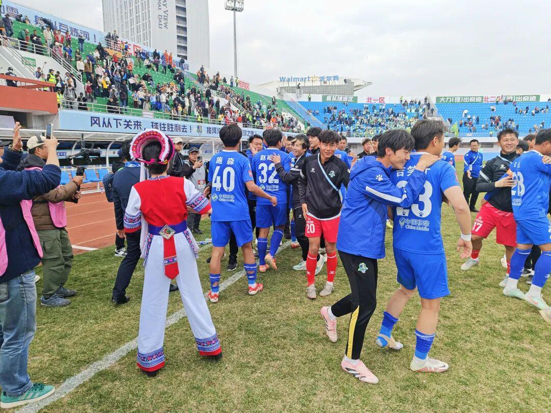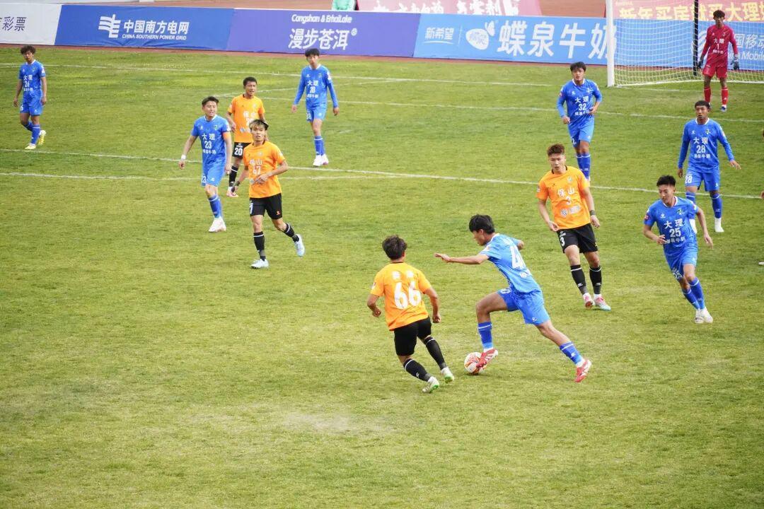 比赛第85分钟,大理队在禁区内获得点球机会,15号队员艾尼凯尔・赛麦提主罚稳稳命中,帮助球队锁定胜局。最终,大理主场2-0击败保山,在主场全取3分的同时斩获赛季首胜,收获了主场球迷的欢呼与呐喊。