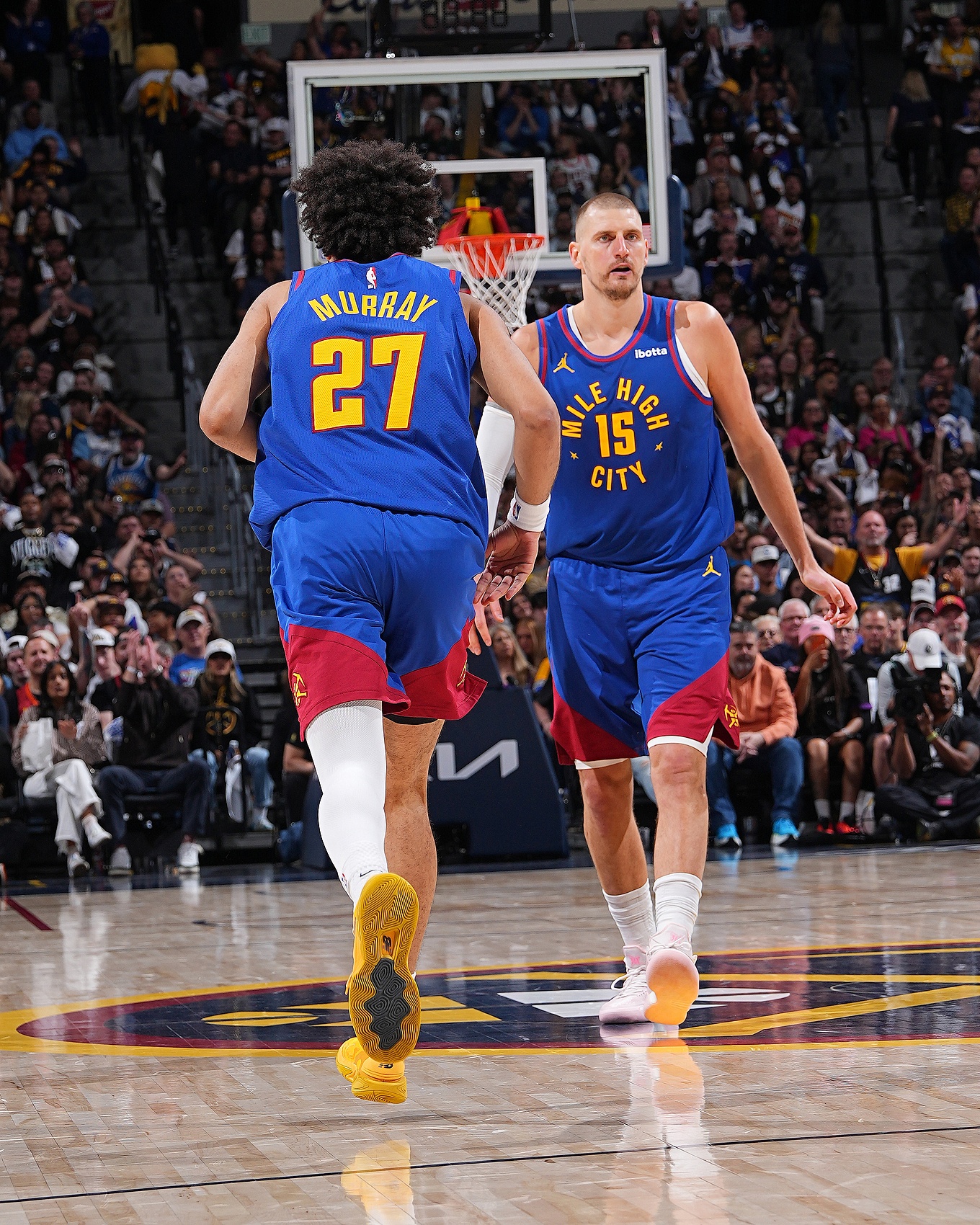 约老师和穆雷末节合计13中2,投篮出手都力道偏小,明显是疲惫的表现。毕竟,系列赛G2就让双核打40分钟以上,尤其穆雷更是打了42分40秒,如此高强度的比赛,最终必然体能枯竭累垮。